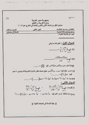 امتحانات هندسة للصف الثالث الاعدادى الترم الثانى 2019 للسنوات